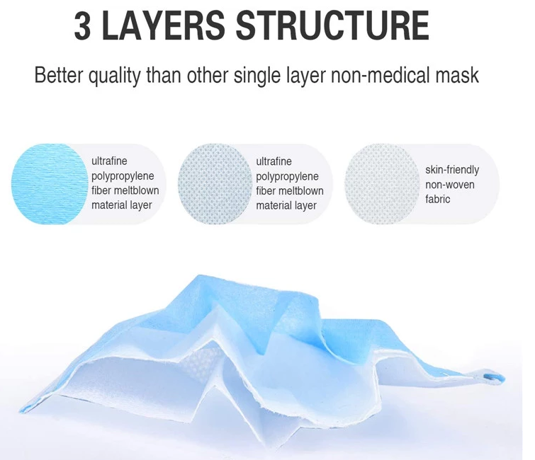 Disposable Ear Band Utrosonic Welding Medical Three Layer Non Woven Fabric Face Mask