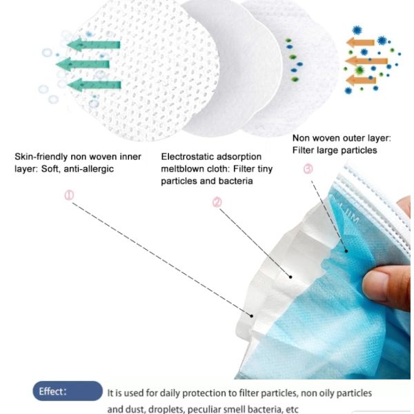 Special three-layer designed face mask, consisting of soft polypropylene (PP) and Melt-blown filter